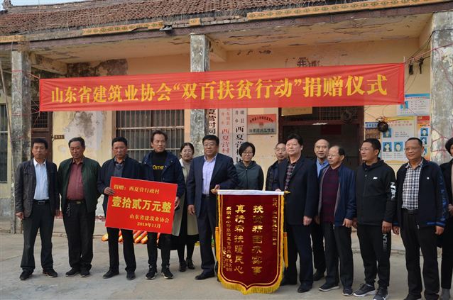 11月8日,山東省建筑業(yè)協(xié)會“雙百扶貧行動”捐贈儀式在菏澤市東明縣小井鎮(zhèn)夏營村正式啟動。菏澤市東明縣掛職縣委副書記趙洪亮、省建筑業(yè)行業(yè)協(xié)會秘書長林濱等參加捐贈儀式。匯通公司第一黨支部書記袁鵬作為省建協(xié)會員單位代表參加了活動。脫貧攻堅是黨中央、國務(wù)院作出的重大戰(zhàn)略部署,是全社會的重要責(zé)任。匯通公司作為省建協(xié)會員單位,深入貫徹扶貧開發(fā)的重要思想,領(lǐng)會精髓實質(zhì),以實際行動積極參與“雙百扶貧行動”。西夏營行政村位于小井鎮(zhèn)的東部,現(xiàn)有村民321戶,享受扶貧優(yōu)惠政策的共39戶,耕地面積3600畝,共有農(nóng)田灌溉機井22眼,遠不能滿足灌溉農(nóng)田的需要。此次《幫扶西夏營村打機井增容項目》擬新打機井10眼,匯通公司